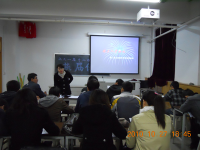 2010年10月27日晚,化学化工学院学生第三党支部全体党员在学院多媒体教室开展了“端正入党动机 做合格党员”主题活动。这是第三党支部创先争优系列活动之一。会议强调端正入党动机是争取入党的首要问题,每一个要求入党的同志,都应该充分认识到端正入党动机的重要性,进一步明确为什么入党,入党是为了什么,努力克服和纠正不正确的入党动机,不断提高思想认识,真正做到在行动上和思想上双双入党。