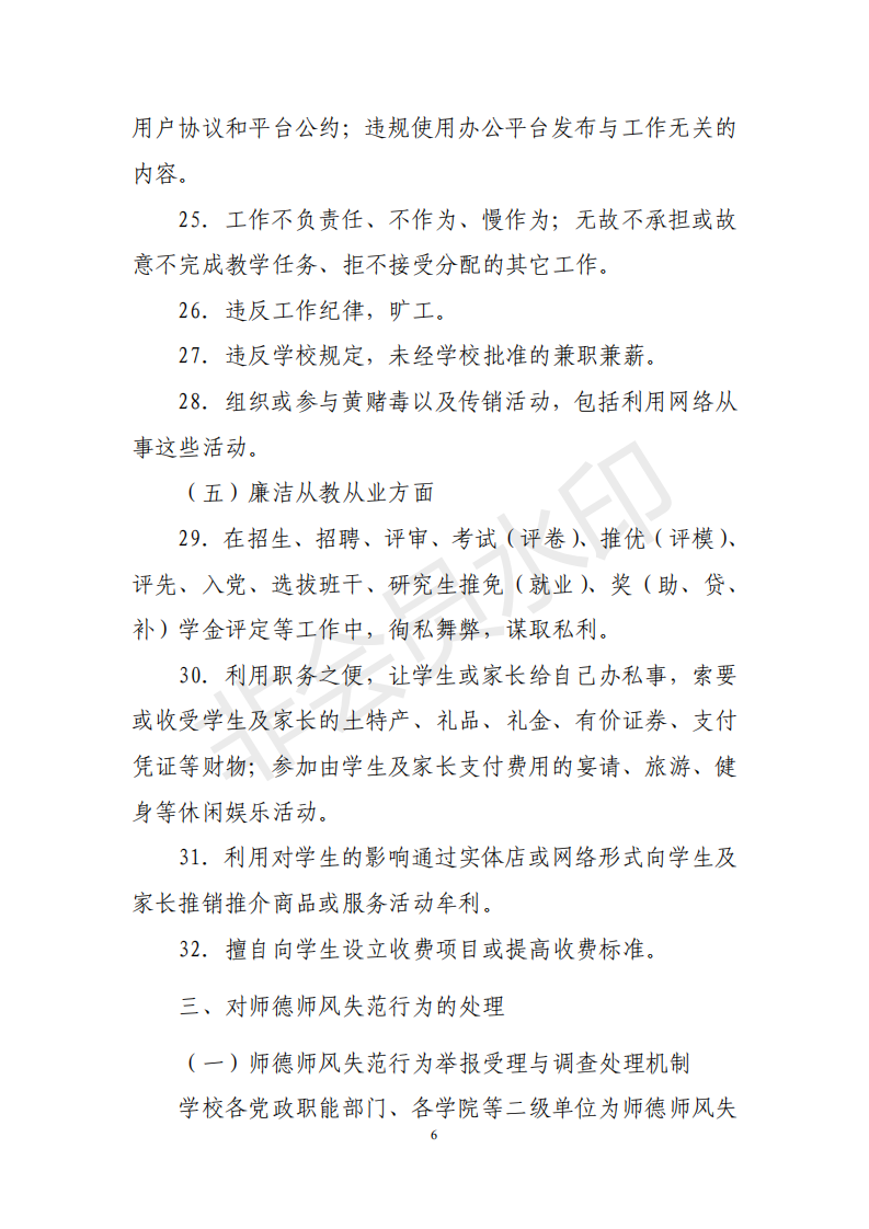 金年金字招牌诚信至上师德师风负面清单和失范行为处理办法