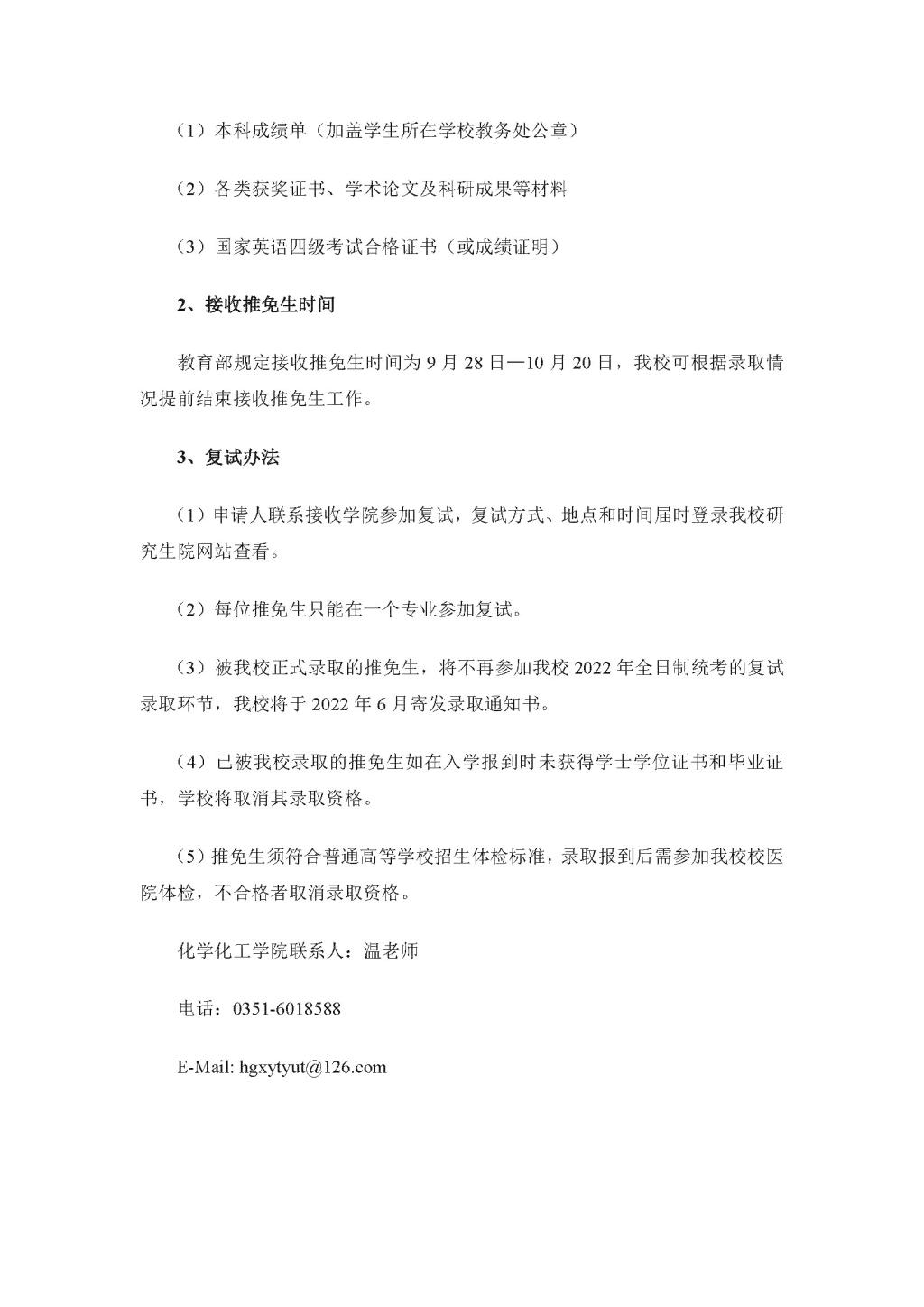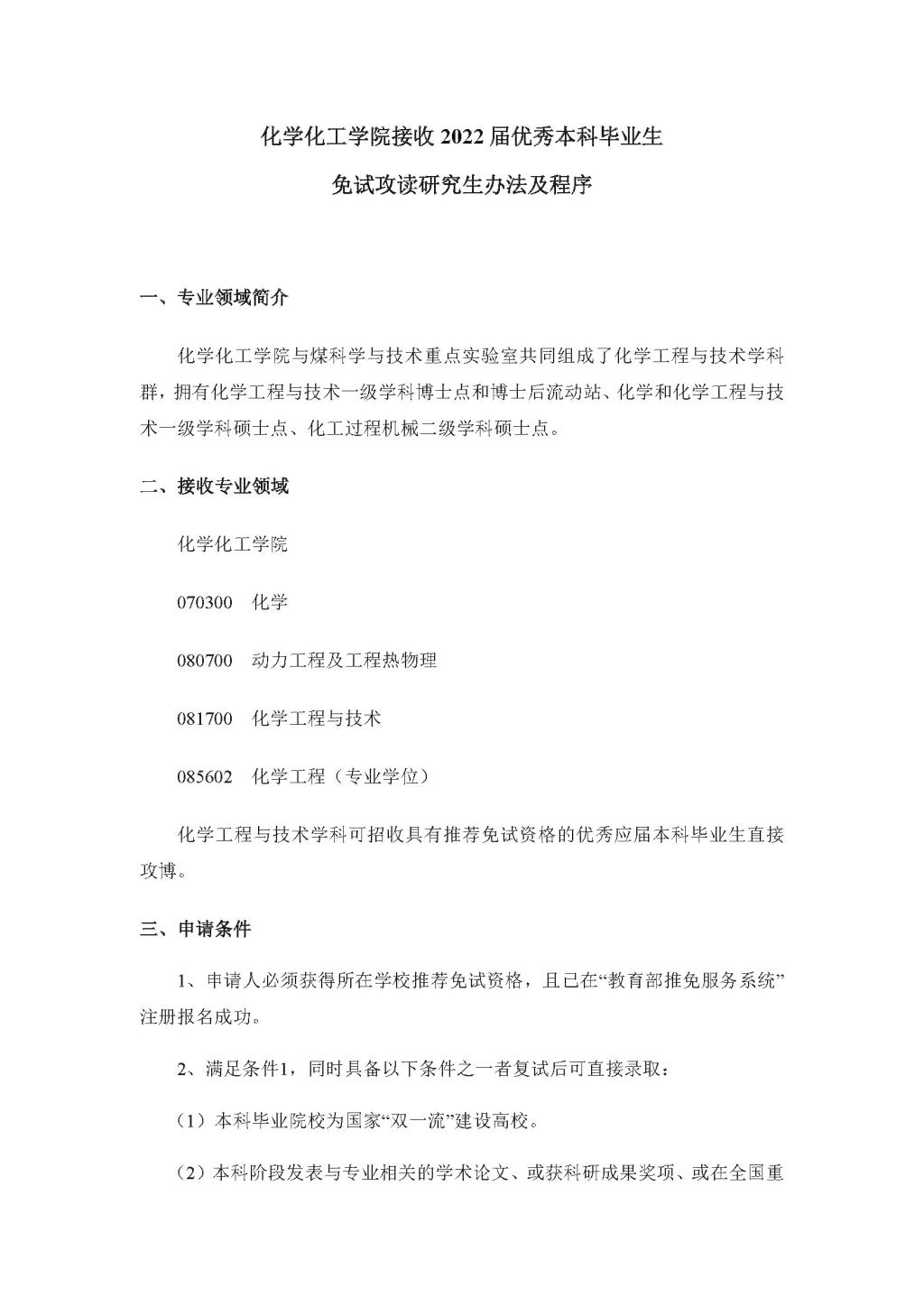 化学化工学院接收2022届优秀本科毕业生免试攻读研究生办法及程序