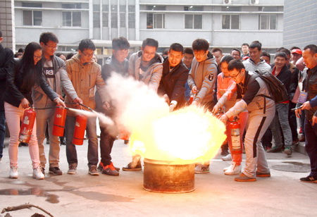 会后,学院举行了消防演练活动,让大家都熟悉使用灭火器等设备,做到面对火情火警危险,能够做到临危不乱,井然有序。