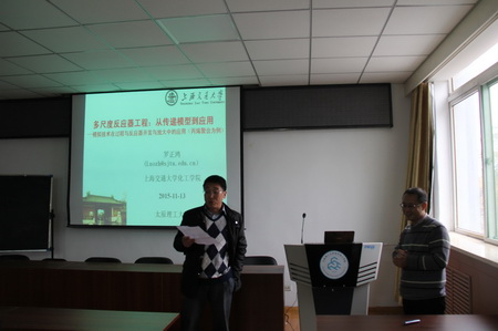11月13日下午,应化学化工学院邀请,上海交通大学化工学院罗正鸿教授在我校迎西校区化工馆-化学化工学院三层会议室,作题为“多尺度反应器工程:从传递模型到应用”的学术报告,化学化工学院副院长董晋湘教授、化学工程系主任郝晓刚教授以及化学工程方向的部分教师、研究生及卓越工程师试点班本科生参加了报告会。