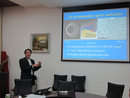 10月17日上午,澳大利亚昆士兰大学生物工程及纳米技术研究所余承忠教授应邀在金年金官网二层学术会议室作了题为《纳米多孔材料的自组装及应用研究》的学术报告。金年金官网部分教师及硕、博士研究生参加了报告会。