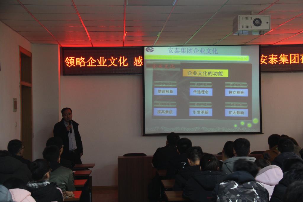 赵凌俊部长详细介绍了安泰集团的“爱我安泰,以诚相待”的企业核心理念和安泰集团多年来坚守初心,扎实推进“三心”“四力”“五诚”“六化”的企业文化,以及把企业文化转化为号召力和营销信用力,实现科技与人文、企业与社会、员工与企业的价值融合,引导企业向远大目标迈进,创造最佳经济效益的举措,充分诠释了工匠精神内涵在企业发展核心竞争力打造和企业引领作用的发挥方面所起的作用,深刻解读了创新、敬业、执着、诚信等工匠精神内涵对产品质量的研发,产品质量的改进和完善的影响。