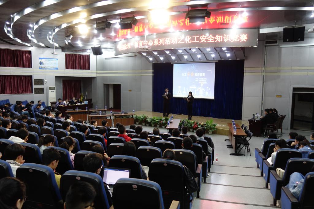 3月26日晚,金年金官网在思贤楼三层报告厅开展化工安全知识竞赛。本次竞赛活动中,参赛队伍由初赛中脱颖而出的16名学生组成,分成4个小组进行最后的角逐。学院近300名学生到场观看比赛,全体学工队伍出席本次竞赛,还特邀在化工安全领域有一定造诣的专业教师王玉乔担任顾问。