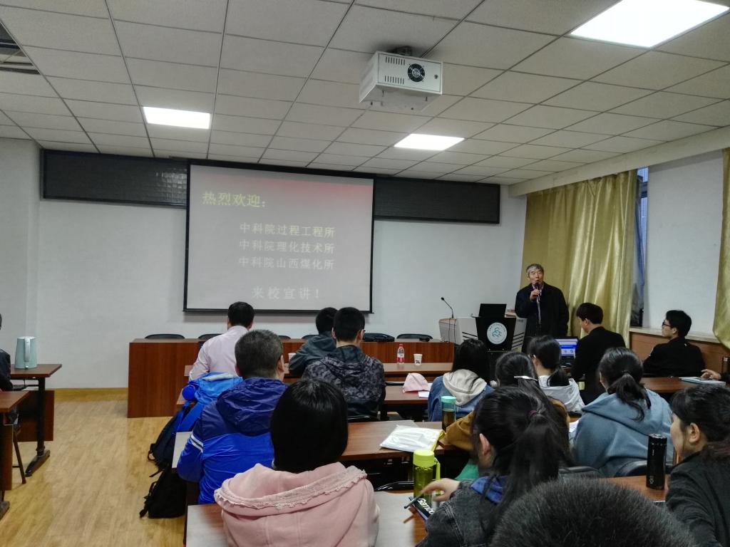 4月15日晚7点,中科院过程工程所、中科院理化技术所以及中科院山西煤化所三位老师来我校进行考研宣讲报告,会议在化工馆三楼会议室举行。有80余名即将考研的学生听取了报告,报告会由学院院长董晋湘主持。