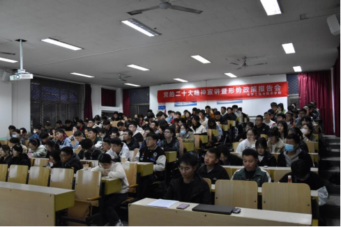 为深入学习宣传贯彻党的二十大精神,根据学校研究生院的安排部署,化学工程与技术学院于4月3日晚7点在思贤楼面向研究生开展了党的二十大精神宣讲暨形势政策报告会。马克思主义学院胡文秀老师受邀担任主讲老师,参加报告会的有金年金官网研究生骨干、党员和入党积极分子代表、专兼职辅导员等。