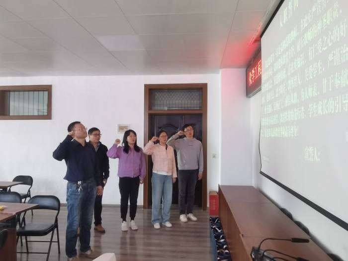 新入职教师张阳、王丽、马彩平和代卫炯分别发言,他们感谢学院给予新入职教师的关心与支持,表示一定不辜负学院厚望,矢志立德树人,投身科学研究,增强育人本领,尽快成长为一名合格的新时代高校教师,为学院高质量发展贡献力量。荣休教师代表李福祥教授带领新入职教师庄严宣誓,铮铮誓言表达了新入职教师对党的教育事业的庄重承诺。