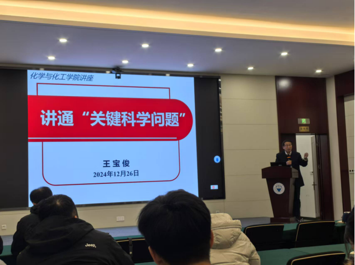 12月26日上午10:00,系列讲座首场活动在迎西会议中心一层报告厅顺利举行,由王宝俊教授主讲,主题为“讲通‘关键科学问题’”。他结合自身多年的科研积累,深入讲解了如何准确提炼关键科学问题以及如何围绕科学问题设计研究方案。通过鲜活的案例分析和深入浅出的讲解,王老师为与会教师梳理了科学问题与研究计划的逻辑关系,帮助大家明确了申报方向和突破口。