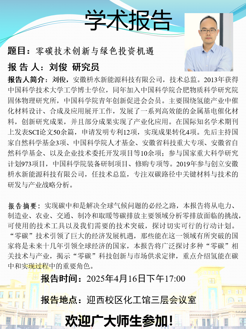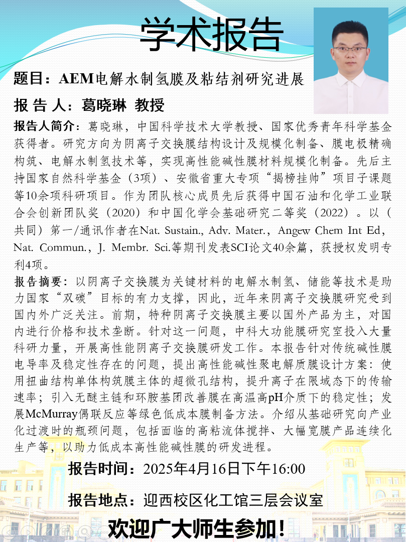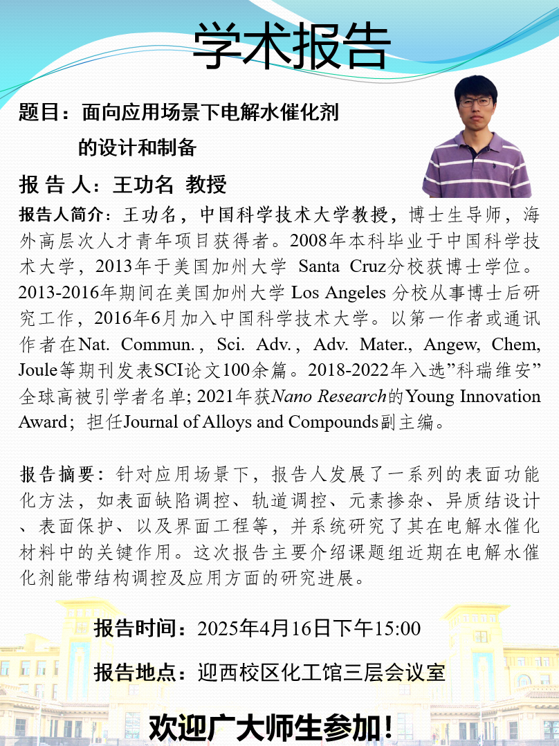 中国科学技术大学王功名教授、葛晓琳教授和安徽枡水新能源科技有限公司刘俊研究员应邀来金年金官网作学术报告