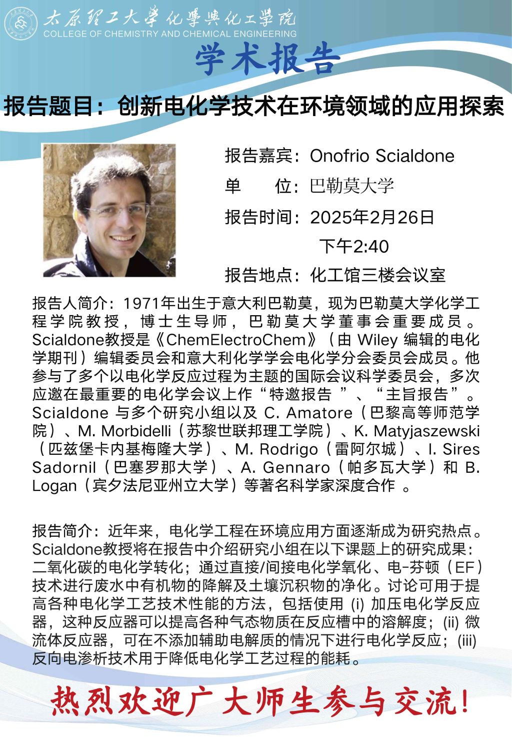意大利巴勒莫大学Onofrio Scialdone教授应邀来金年金官网作学术报告