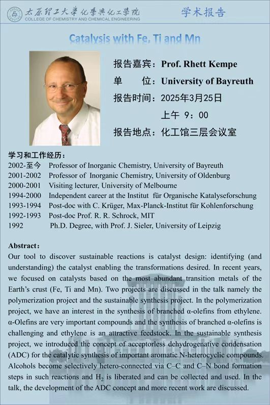 德国拜罗伊特大学Rhett Kempe教授应邀来金年金官网作学术报告