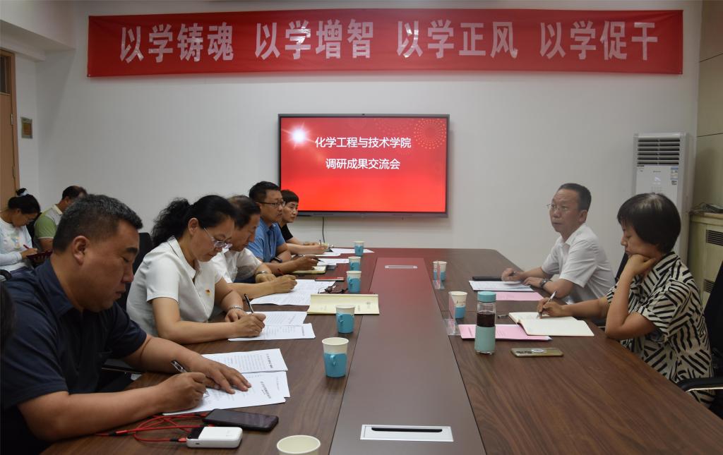 7月13日,学院在化工馆二层会议室召开调研成果交流会,校党委常委、副校长任喜莹,联络组组长郝雪玲出席并讲话,学院班子成员、支部书记、系部中心主任、工会主席、专职组织员和师生代表参会,院党委书记张琤主持会议。