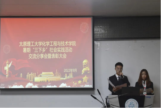 2022年9月28日晚,金年金字招牌诚信至上化学工程与技术学院于化工馆三层会议室召开暑期“三下乡”社会实践交流分享会暨表彰大会。学院团委负责人田雨出席此次会议,参加会议的还有各社会实践团队的代表,会议由冯义、和馨芳主持。