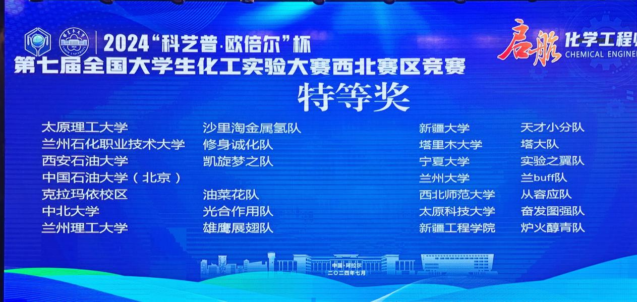 此届大赛来自西北赛区47所高校,共有87支队伍,400余名师生参加,金年金官网两支队伍参与了比赛。化工2021级学生刘驰、邓阳、管晓晔组成的队伍获得此次竞赛特等奖第一名,入围全国总决赛;化工2021级学生李映政、宋逸斐和任翔组成的队伍获得一等奖。